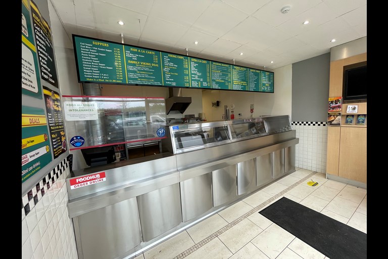 - Former fish & chip takeaway restaurant extending to c. 664 sq ft.